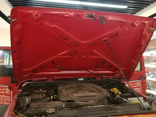 原车引擎盖只是一层单薄的铁皮结构