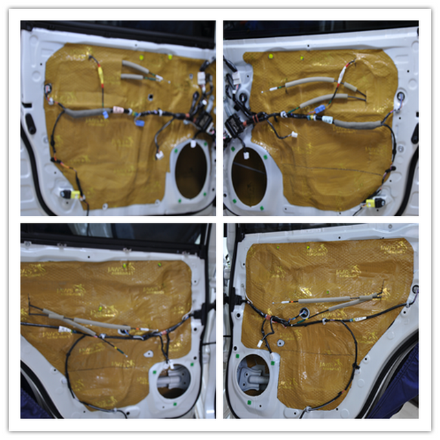 根据客户的诉求,技术团队针对性的定制了全车隔音降噪解决方案,主要对汽车的四门、底盘、尾箱、轮毂、引擎盖等部位做了隔音处理。