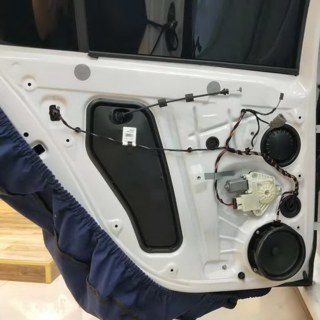 原车门板铁皮结构单薄,且内部未作有效隔音处理,导致门板处噪声非常的大,改装技师使用大白鲨隔音减震胶,对汽车的门板做了双层的隔音处理,有效降低了门板自身的共振噪声,同时也阻止了风噪的传入。