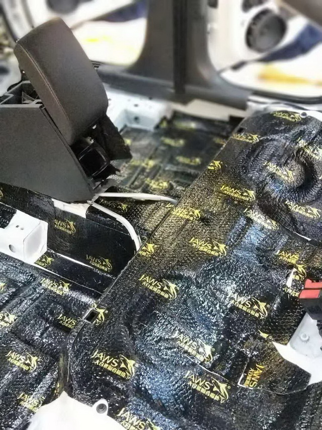 使用大白鲨吸音棉隔音材料对底盘做第二层密封处理