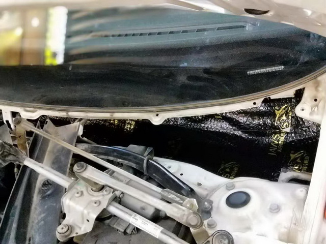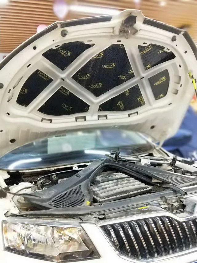 使用大白鲨隔音材料对引擎盖做隔音处理