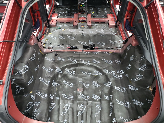 使用大白鲨黄金甲对汽车尾箱做第一层隔音处理,有效起到止振的作用