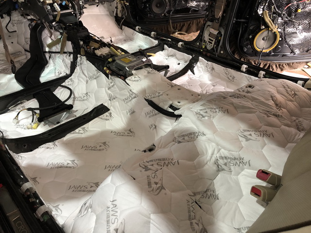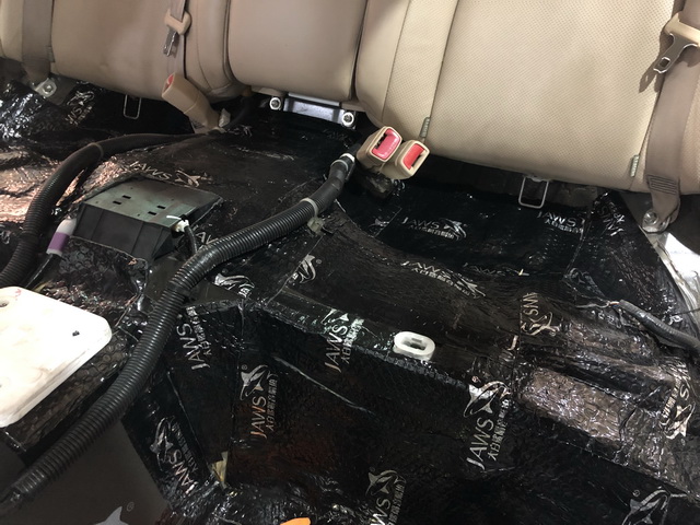 改装技师使用大白鲨隔音减震胶对底盘进行了隔音处理