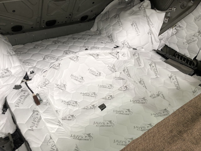改装技师使用大白鲨白棉对全车底盘做了密封隔音处理