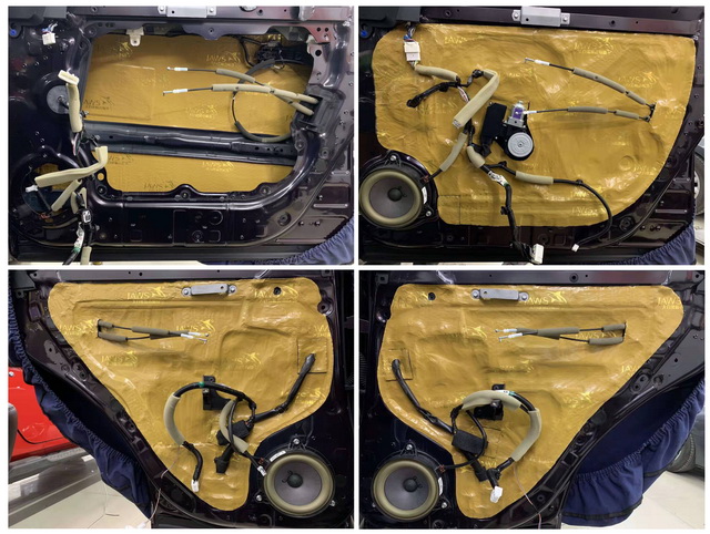 使用大白鲨隔音材料对汽车四门板进行隔音处理