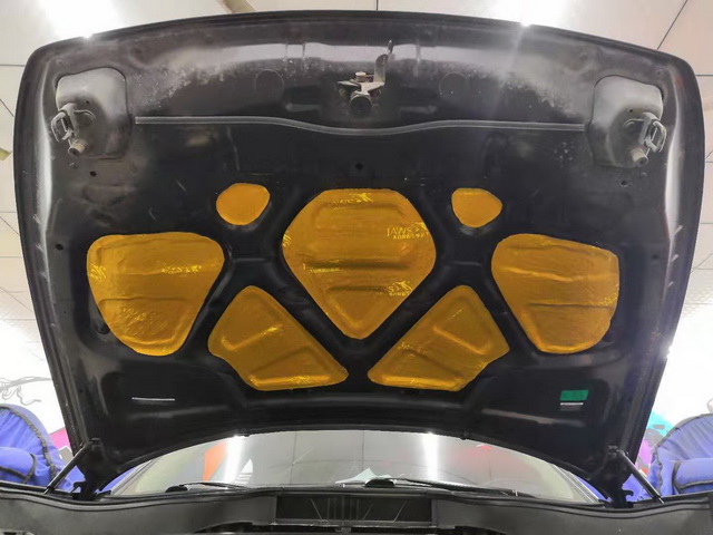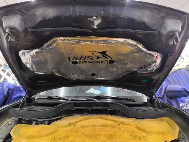 发动机工作时不仅会产生噪音,还会产生高温。所以使用大白鲨隔音材料对汽车引擎盖进行双层的隔音处理,能够在有效隔音吸音的同时,还能够起到隔热的作用,保护发动机机盖表面的车漆。