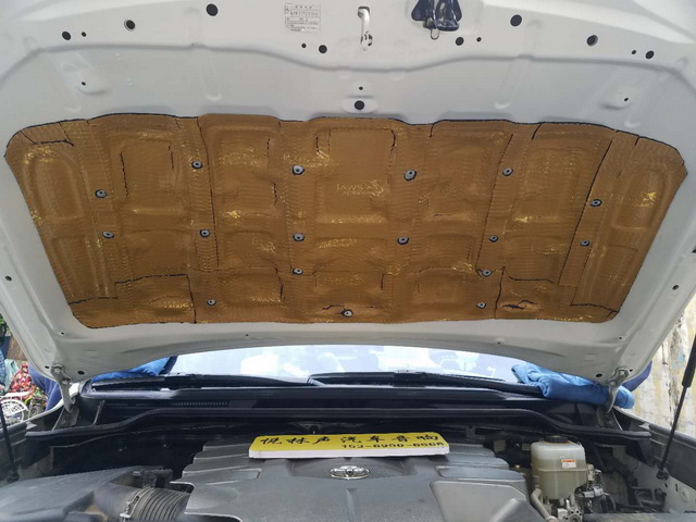 最后,改装师也对引擎盖部位进行了隔音处理,引擎盖部位由于发动机的存在,热量常年积累会将漆面老化,使用大白鲨黄金甲可以有效减振隔音,使用大白鲨引擎隔热膜可以减少热量传递,保护漆面。