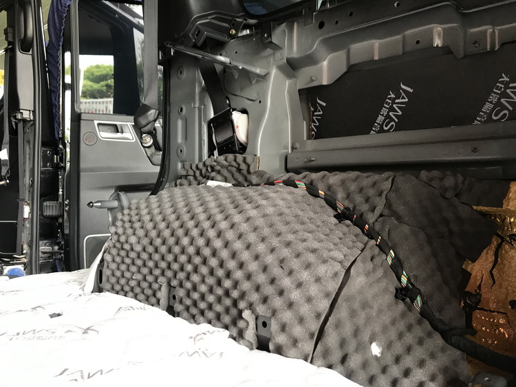 汽车在行驶时,会产生很大的胎噪,此类噪声主要通过轮弧传入到车厢内部。改装技师在车厢内部,使用JS300。隔音垫和高弹棉,对轮毂做三层隔音处理,在车厢外部,则使用同样的隔音材料,对轮弧做三层隔音处理,为使得隔音效果更为理想,改装技师还特意使用JS300和隔音垫,对叶子板做了双层隔音处理,从而切断了胎噪的传播途径,让整车即便是在高速行驶时,也非常的安静。