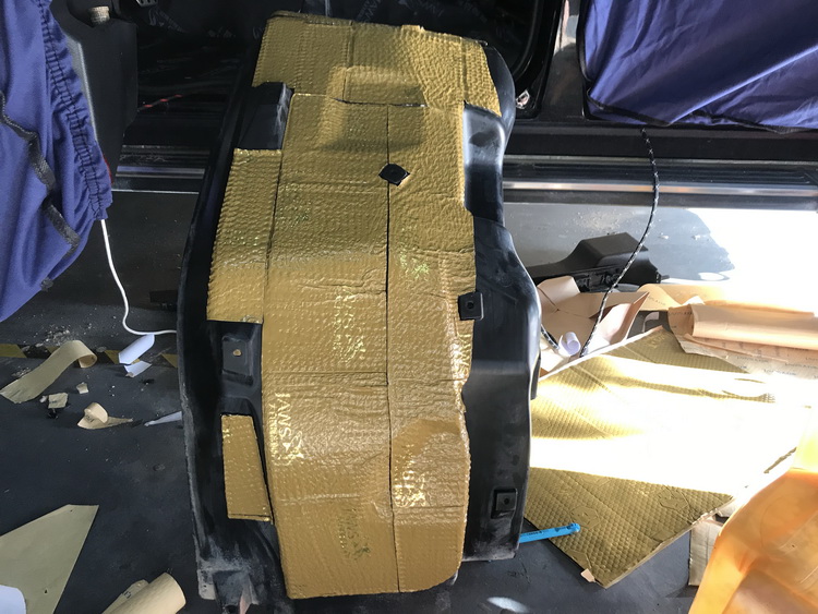 使用JS300、隔音垫、高弹棉对轮弧做隔音处理