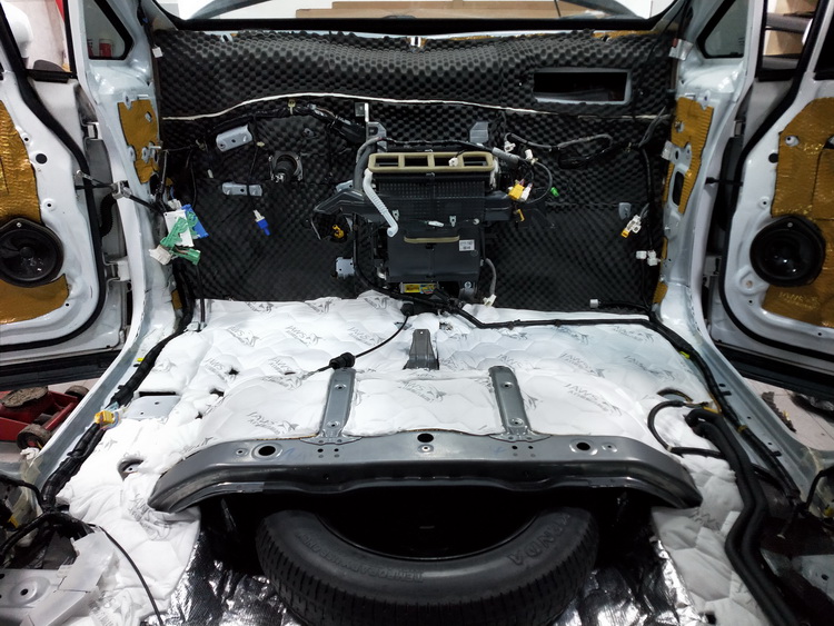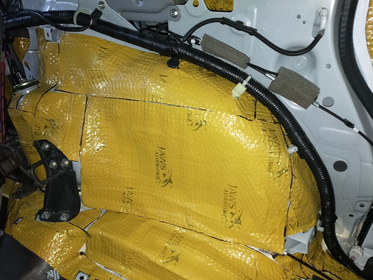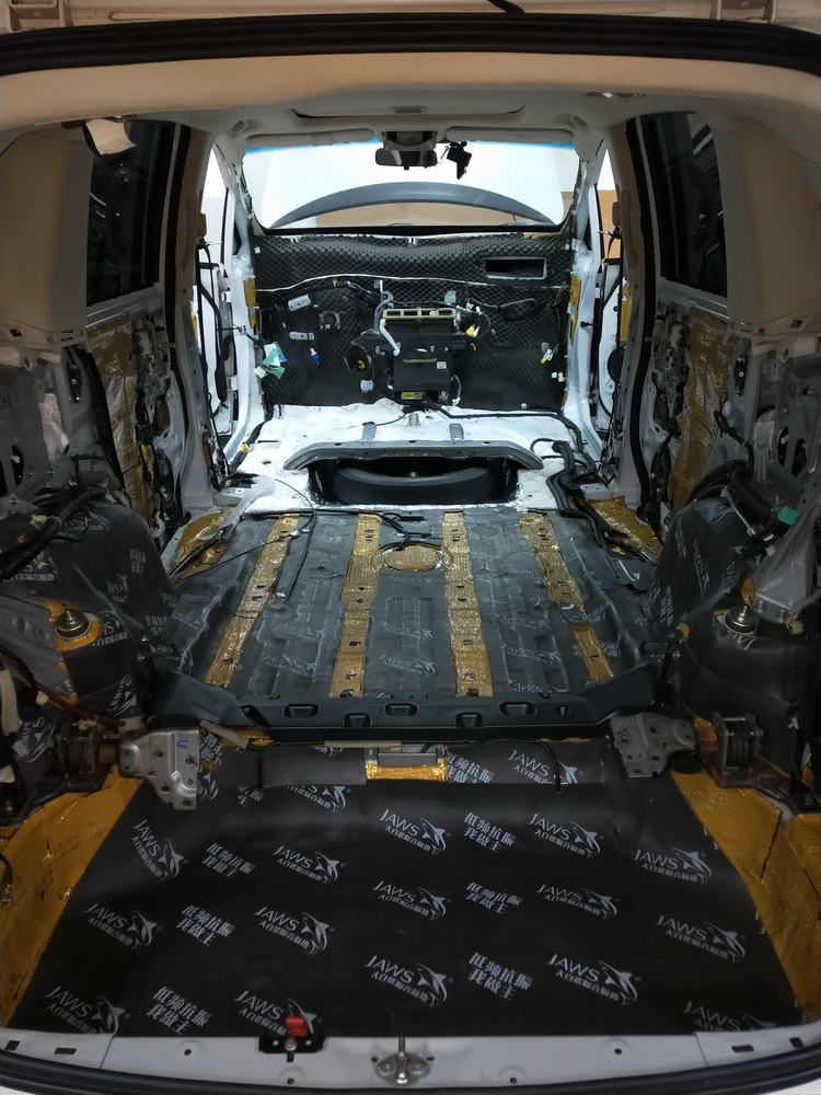 底盘:JS300+隔音垫+消音棉 (备胎位为防止换备胎时磨损消音棉,改贴为引擎盖隔音隔热棉)