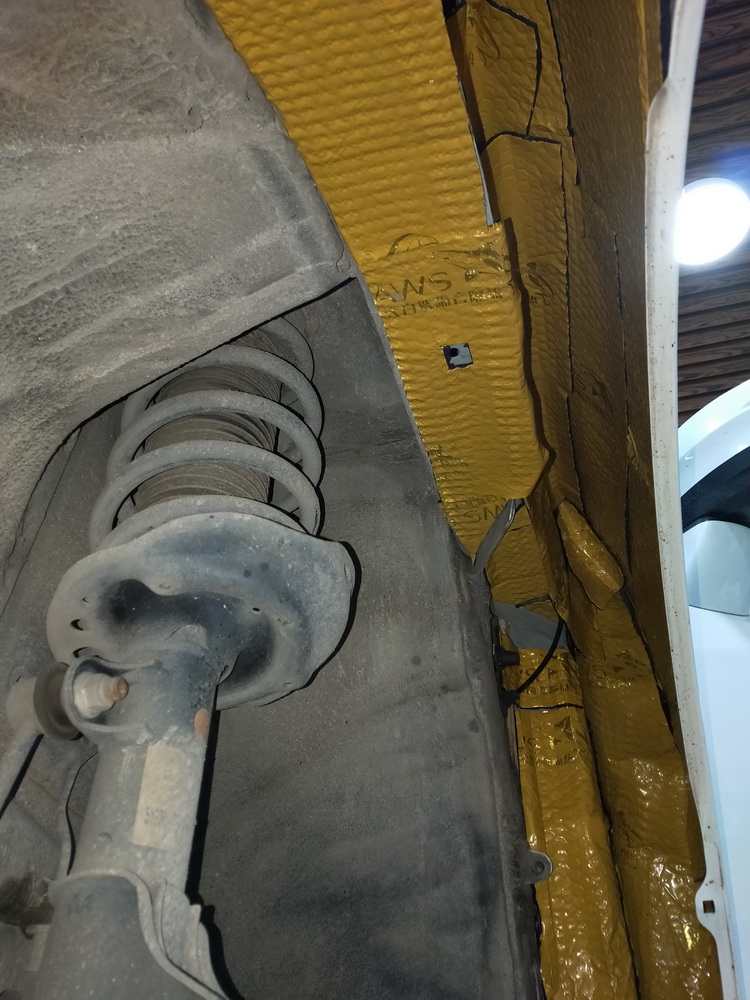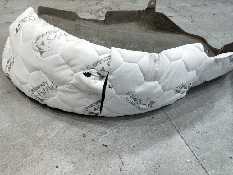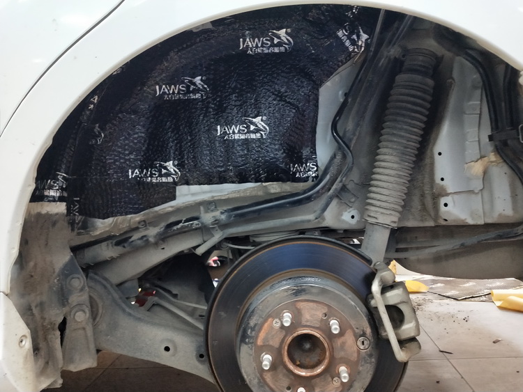 对汽车轮弧做第一层隔音处理