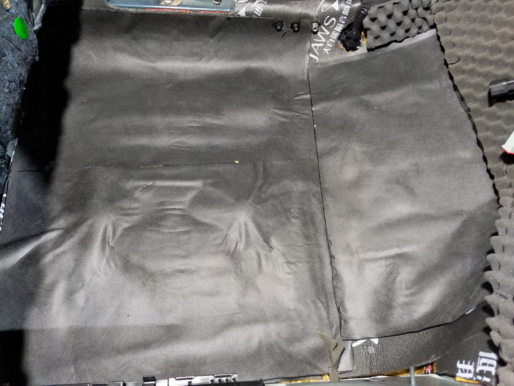 接下来在汽车防火墙的位置,技师使用金鲨JS300做第一层止振处理,可以强化钣金的抗振性、抑制共振噪音,之后,使用隔音垫做第二层隔音处理,可以有效的隔绝噪音噪音。最后,技师还使用吸音效果出色的高弹棉进行了第三层隔音处理,将防火墙满贴,有效隔绝了发动机舱对防火墙的噪音影响。