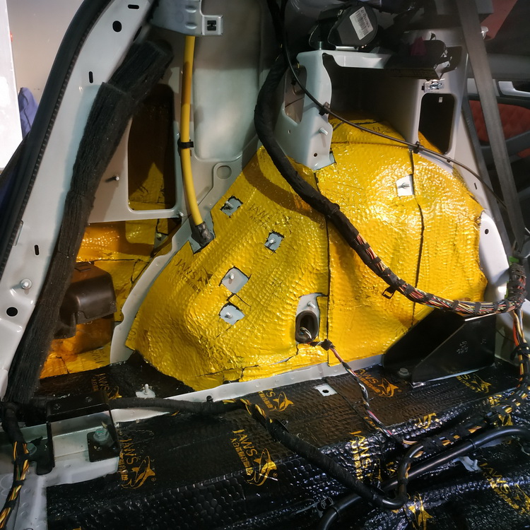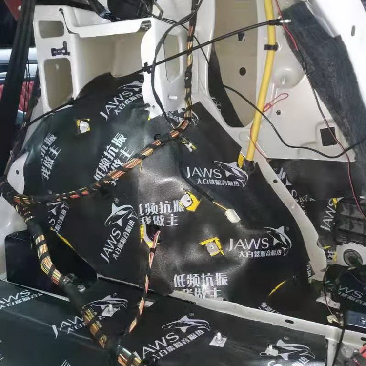 凭借丰富的施工经验和专业的仪器检测,技师发现原车的隔音材料已经老化,而且原车在许多部位的隔音措施也不是特别到位。导致汽车在行驶时,会产生明显的低频共振噪声,外界路噪和胎噪也会传入到车厢内部,所以技师使用大白鲨汽车隔音产品,对汽车的底盘、脚踏位、后备箱和内叶子板,做了全面的隔音处理。