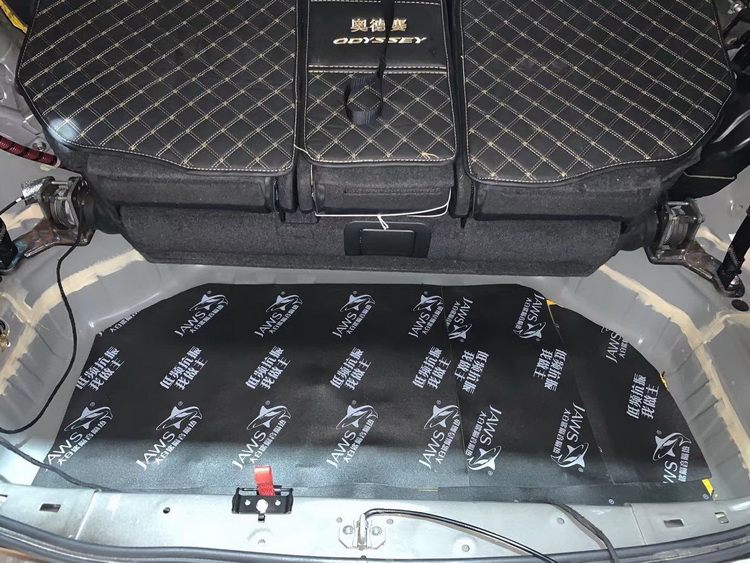 原车的后备箱是一个空腔结构,汽车行驶时后备箱很容易产生共振,所以技师在使用金鲨JS300对后备箱做了止振处理之后,又使用隔音垫对后备箱做了隔音处理,从而减少了后备箱的共振噪声。