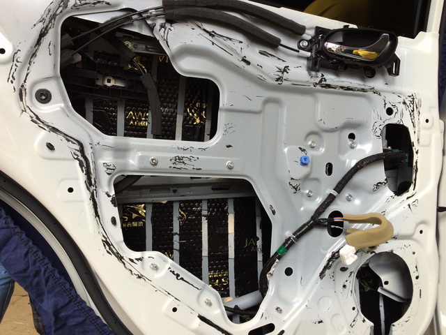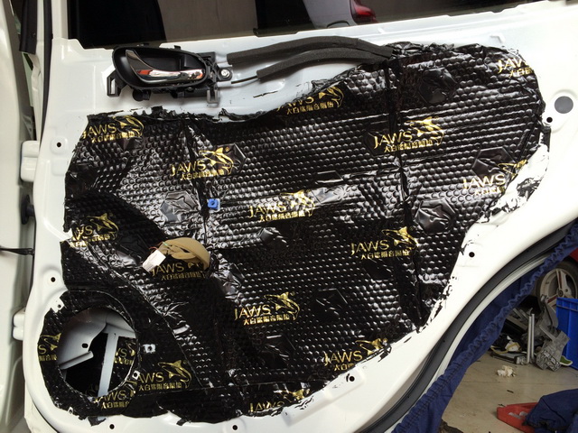 日产骐达原车门板隔音材料十分欠缺,需进行隔音处理