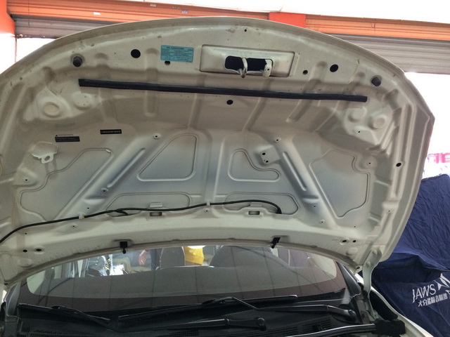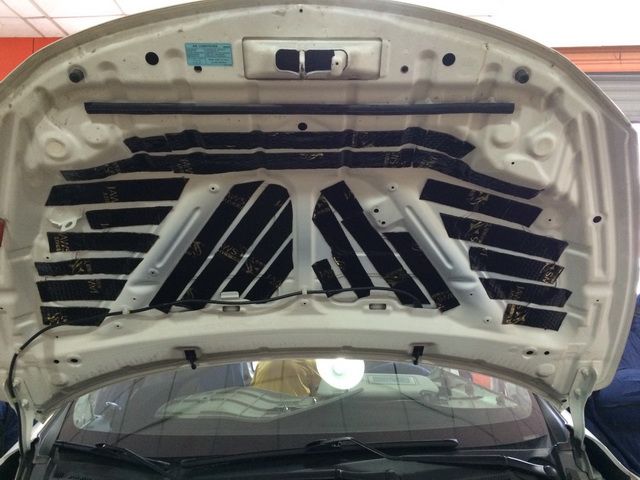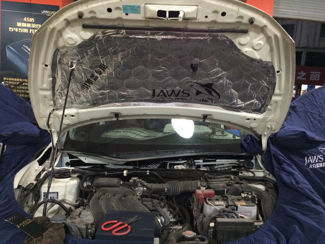 引擎盖第二层隔音加大白鲨隔热膜,阻隔发动机热量烘烤引擎盖漆面而导致老化
