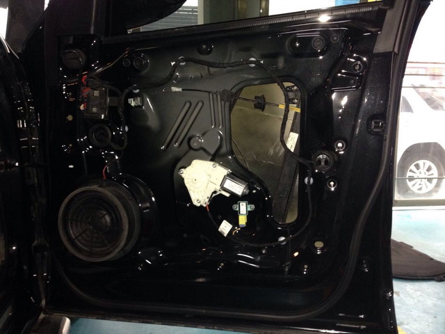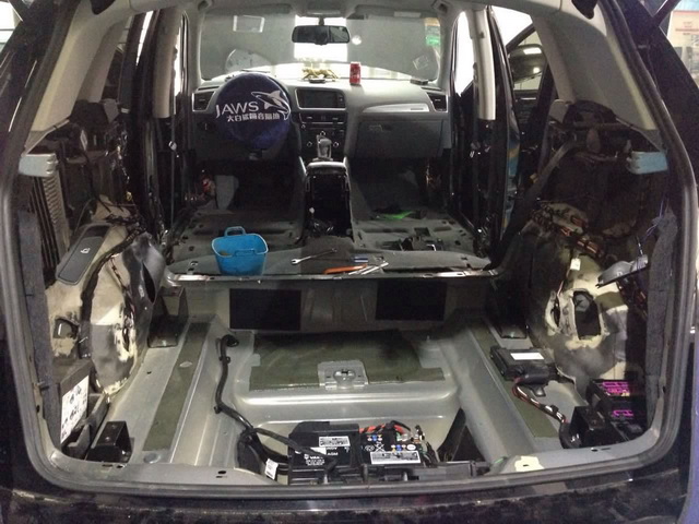 在对奥迪Q5做了一番细致检查之后,兰州金百盛发现原车的门板隔音材料欠缺,底盘,轮弧的结构也比较恶劣,没有做隔音,因此很有必要针对这些噪音的传播部位做隔音。