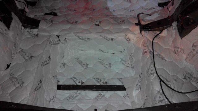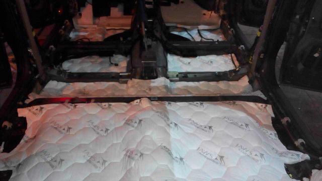 底盘第二层隔音铺上隔音棉进行隔音,对车体进行进一步密封,达到更好的隔音效果