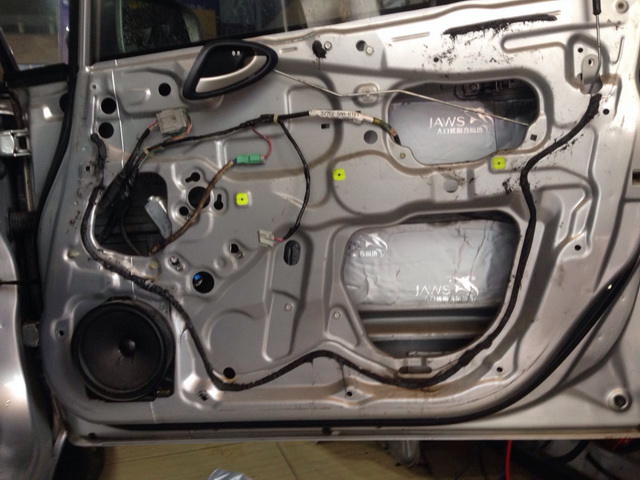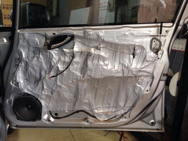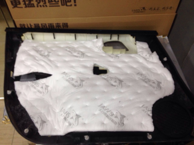 骊威原车在隔音方面有着诸多的不足之处,汽车门板是其中的一个方面。澄海逸声的改装技师将原车门板拆开之后发现门板内部空洞结构较大,且内部连基础的隔音措施都没做。所以改装技师使用大白鲨隔音减震材料对汽车门板以及门板饰盖做了内外三层的隔音处理,降低了汽车门板产生的噪声。