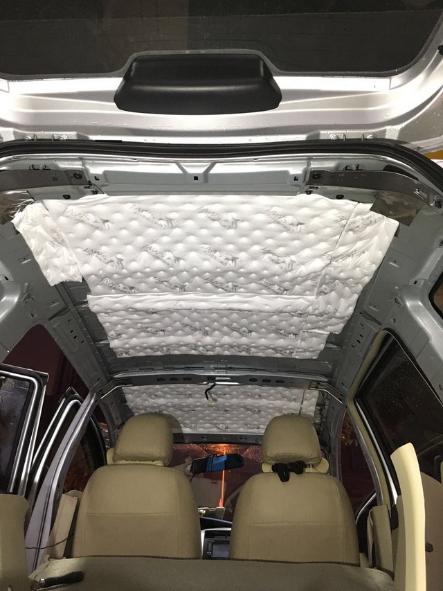 顶棚进行第一层隔音处理,有效隔音减振,并增强钣金刚性