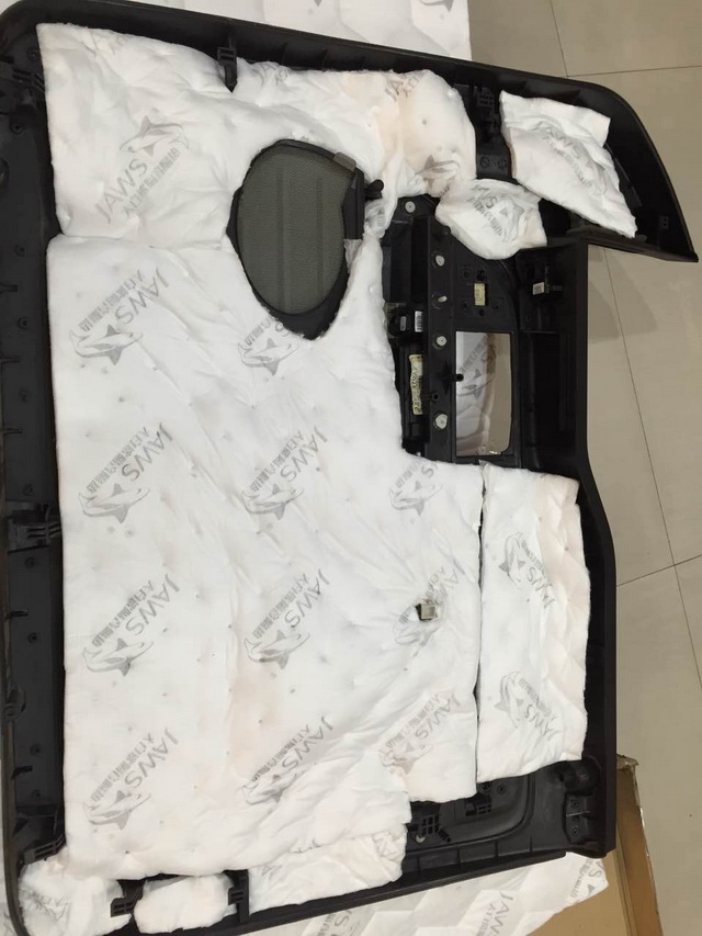 门板的第一层隔音处理起到止振的作用,第二层则有效的起到密封的作用。为了进一步提升汽车门板的隔音效果,西安志远的改装技师还使用隔音棉对汽车的门板饰盖做了隔音处理。汽车门板的双层隔音处理可以有效的起到隔音降噪的效果,让车主有一个更加舒适的驾车环境。