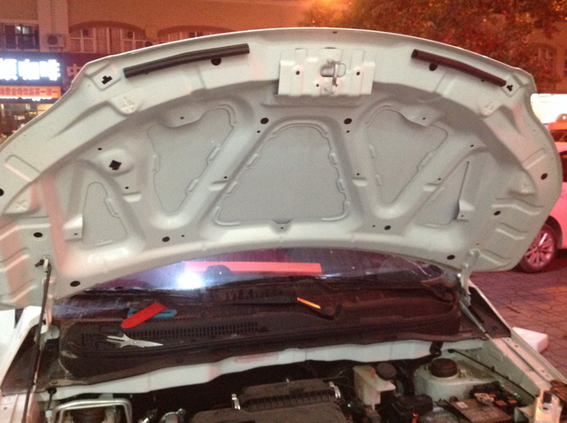 原车引擎盖只是一层单薄的铁皮结构,没有隔音措施