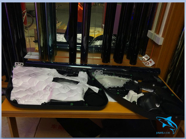 使用大白鲨对门板做双层隔音,降低汽车门板产生的各种噪声