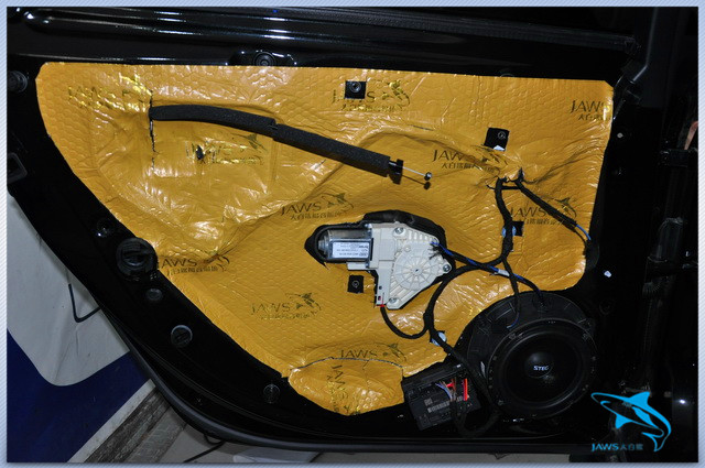 使用大白鲨金鲨对门板做双层隔音,降低汽车门板产生的各种噪声
