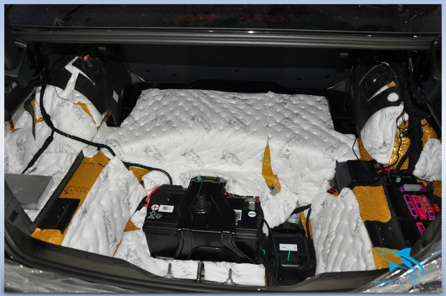 汽车在行驶的时候,底盘和尾箱不仅会产生低频共振噪声,同时很多的机械噪声、小石子撞击底盘的噪声也比较明显。因此贵阳元音改的改装技师,先使用大白鲨金鲨对汽车的底盘做了第一层的止振处理,然后又使用大白鲨吸音棉对汽车的底盘和尾箱做了第二层的密封处理,双层的隔音处理,也将汽车底盘和尾箱的各类噪声降低到了最小。
