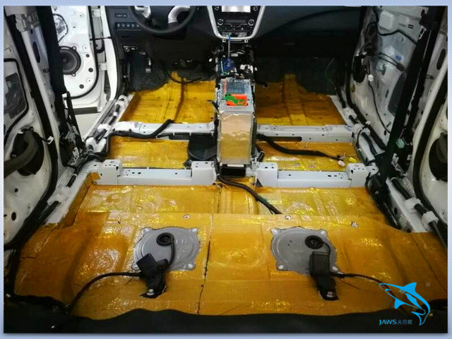 使用大白鲨金鲨对汽车底盘做第一层隔音处理,有效起到止振的作用