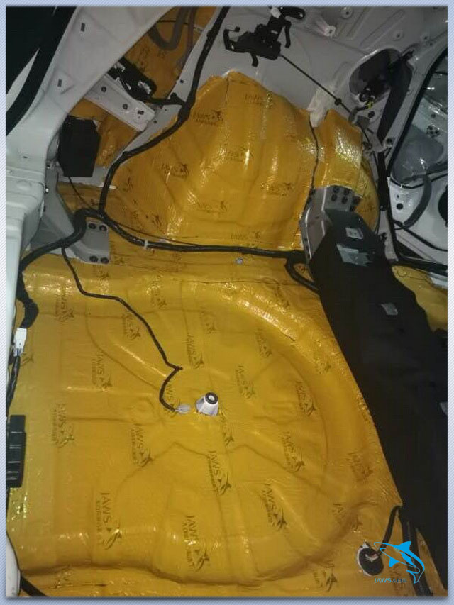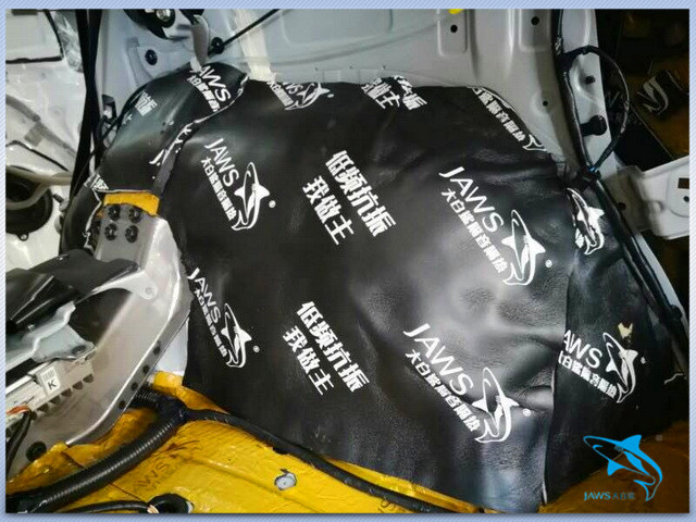 底盘和尾箱是低频共振的重灾区,但原车的底盘和尾箱隔音措施非常的欠缺,因此佛山亨城汽车音响店的改装技师,先使用大白鲨金鲨,对汽车的底盘做了第一层的止振处理,然后又使用大白鲨吸音棉对汽车的底盘做了第二层的密封处理,从而降低了底盘产生的各类噪声。为了阻止胎噪等噪声的传入,改装技师还对汽车的轮毂做了认真的隔音处理。