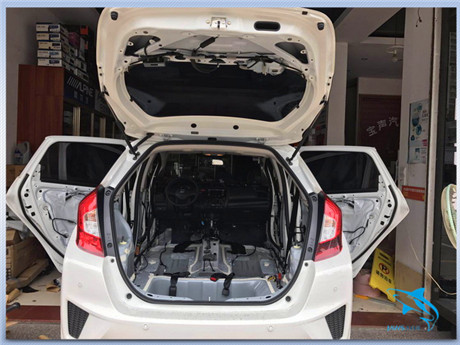 本田飞度虽然造型时尚、个性化十足。但是其在行驶的时候,飞度汽车车厢内却会产生比较明显的噪声,进而对汽车的舒适性产生了非常大的影响。为了能够降低飞度汽车的噪声,车主来到河源宝声汽车音响店,来寻求噪声的最佳解决方案。大白鲨汽车隔音改装