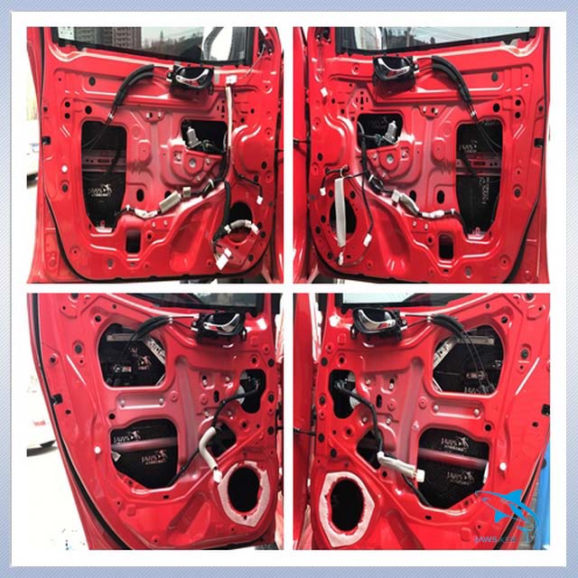 原车的门板铁皮结构单薄,内部的空洞结构也比较多,风噪很容易通过门板传入进来。因此西安志远的改装技师,使用大白鲨隔音材料,对汽车的门板做了双层的隔音处理,同时又对汽车的门板饰盖做了隔音处理,从而减少了风噪的传入。