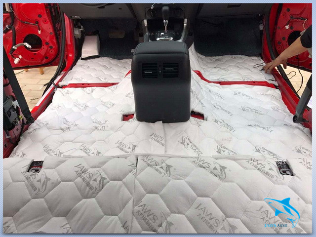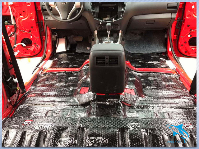 汽车在行驶的时候底盘会产生较大的共振噪声,但原车的底盘并未做任何有效的隔音处理。因西安志远的改装技师,使用大白鲨隔音材料,对汽车的底盘做了双层的隔音处理,这既减少了底盘的共振噪声,同时也有效的增强了钣金的刚性。