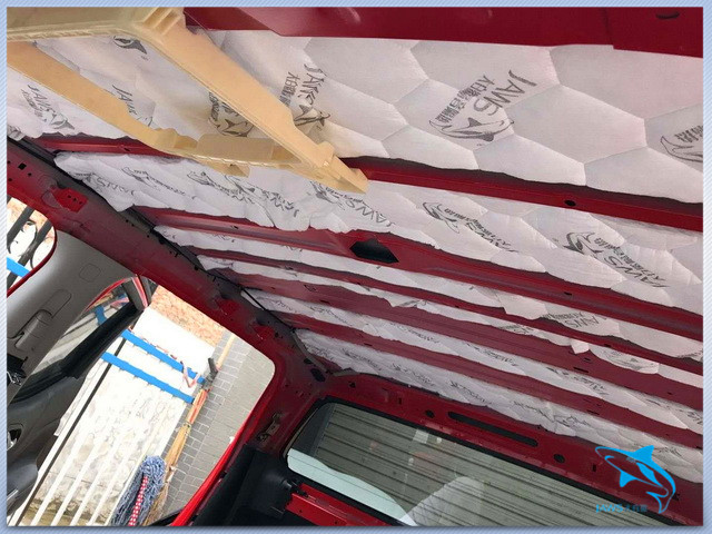 原车的顶棚并未做任何有效隔音处理,如果是遇到阴雨天的时候,雨水冲击顶棚也会产生较大的噪声,因此西安志远的改装技师,使用大白鲨隔音材料,对汽车的顶棚做了隔音处理,这既降低了顶棚处的各类噪声,同时还维持了车厢内温度的恒定。