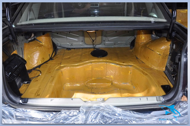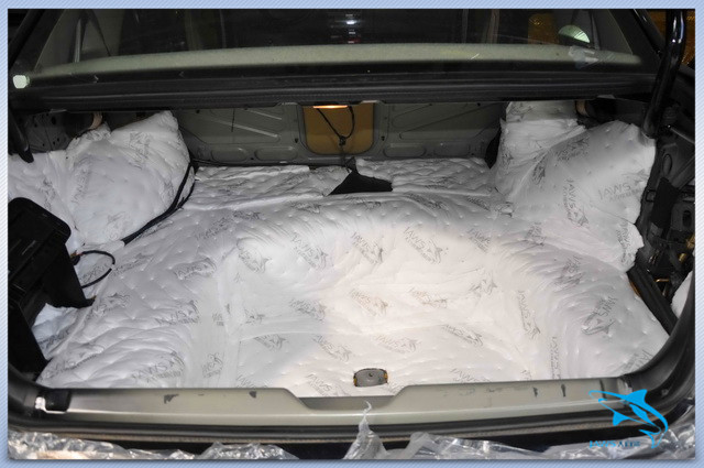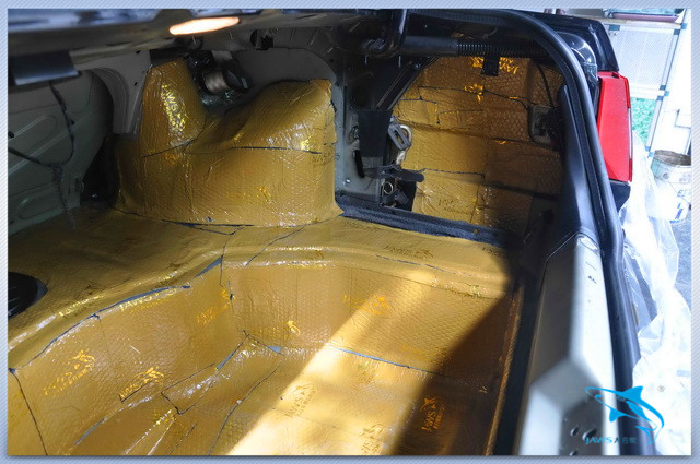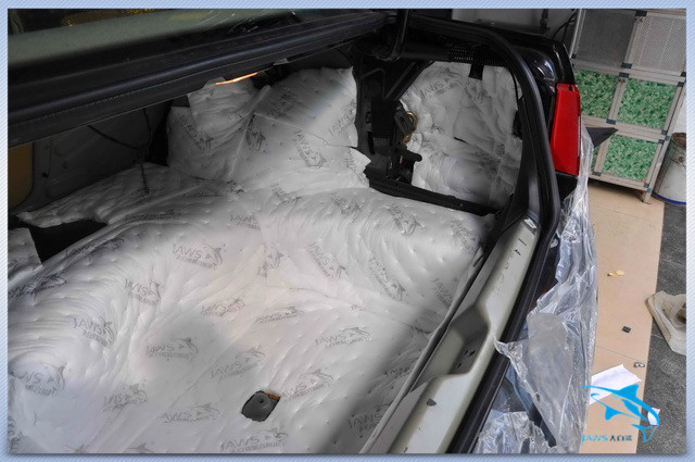 使用大白鲨黄金甲对尾箱做一层止振处理