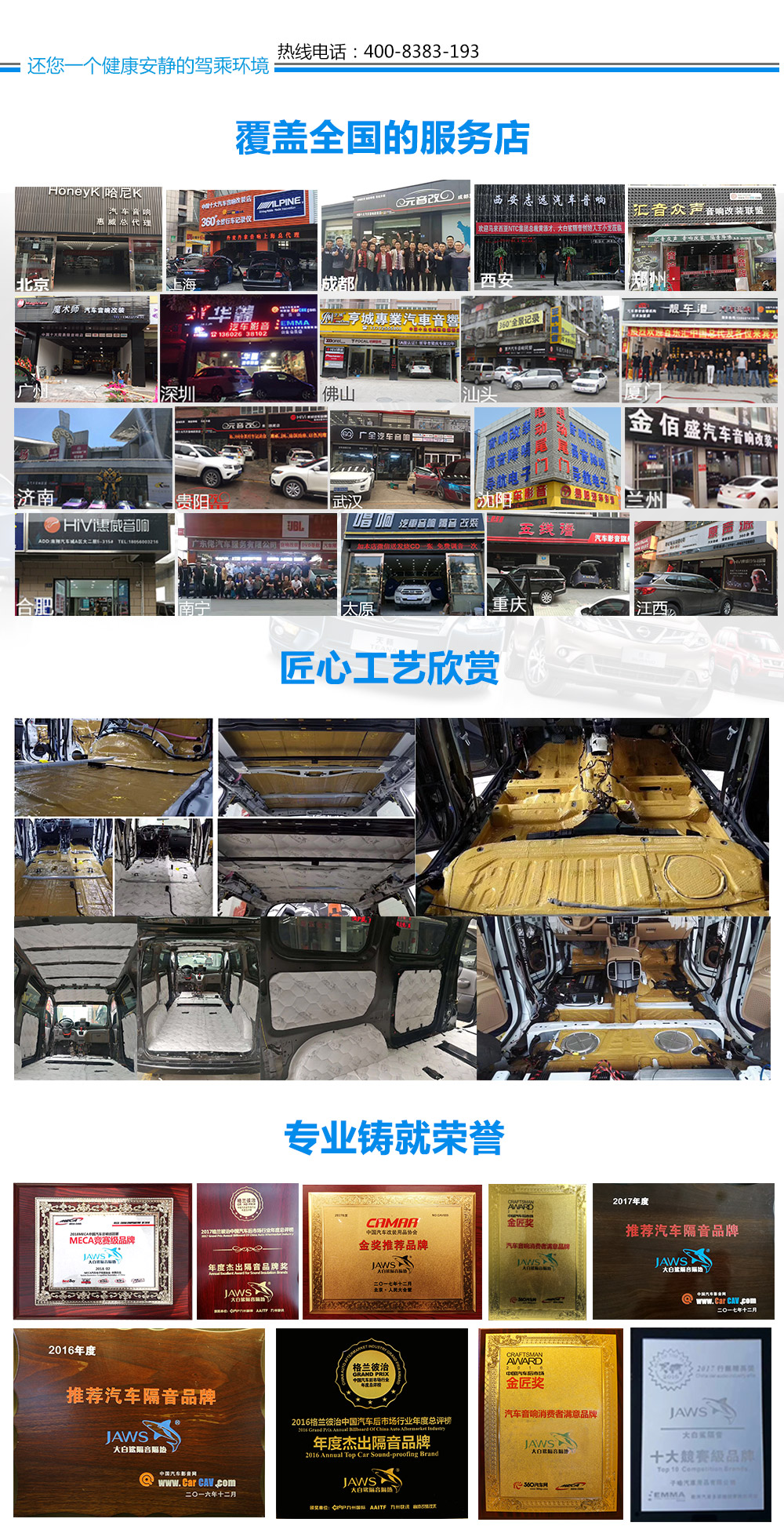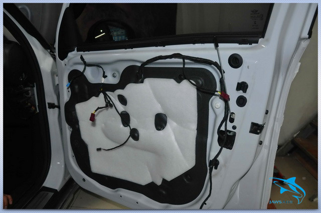 使用大白鲨对门板做双层隔音,降低汽车门板产生的各种噪声