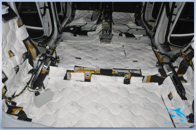 使用大白鲨吸音棉对底盘做第二层密封处理