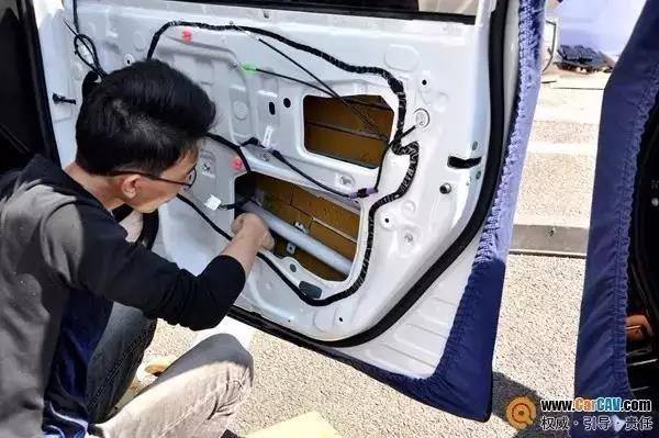 大赛开始,原车门板空空如也,难怪噪音如此大
