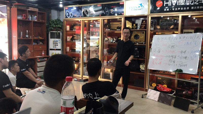 8月6日,大白鲨隔音全国培训会郑州站来到了郑州环亚汽车隔音音响店,正当郑州环亚和芬朗音响联合开展的小班培训正在火热的进行中!大白鲨穿插其中,进行了一场突击性的隔音培训研讨。